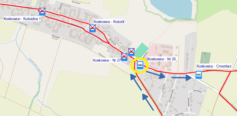 Informujemy, że na czas przebudowy ul. Kościelnej w Koskowicach przystanki dla linii nr „9”: